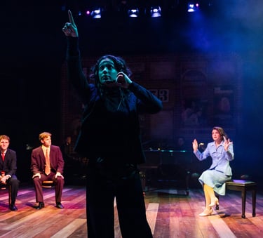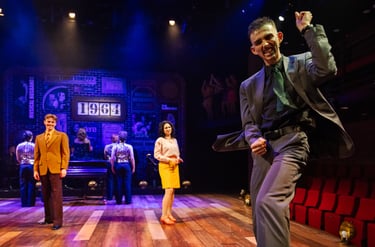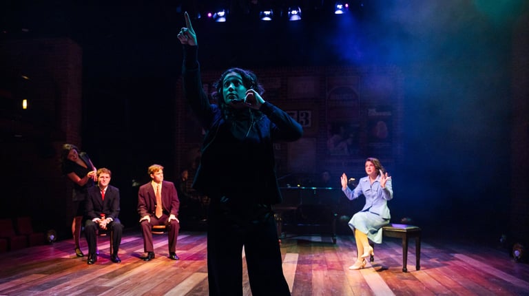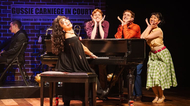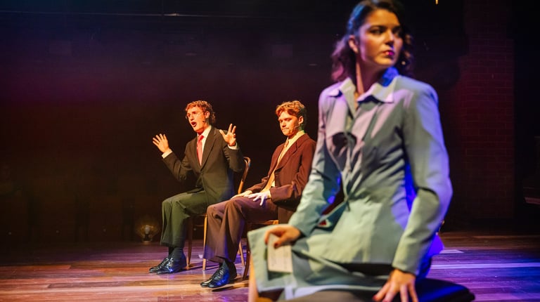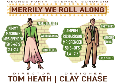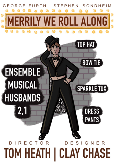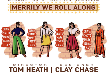 Merrily We Roll Along follows Franklin Shepard backwards through his life as he remembers the turning points and wonders what might have been. It explores the breaking down of his relationships with his best friends and his first and second wives. Incited by the moment Gussie, his second wife decides to leave him, we follow back from the 70's to the 50's where, just back from the war, Frank and his best friends sing about their hopes for the future. The musical is a poignant look at the paths not taken, and how we end up where we are.