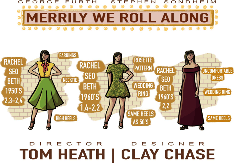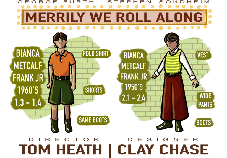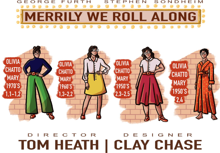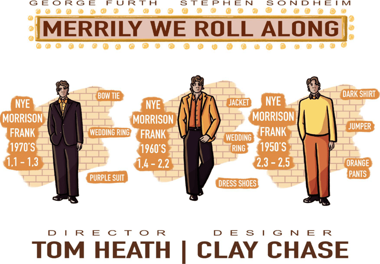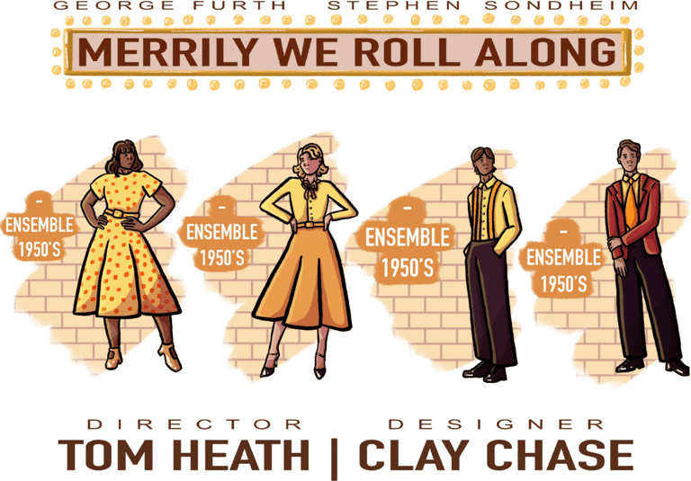 Merrily We Roll Along follows Franklin Shepard backwards through his life as he remembers the turning points and wonders what might have been. It explores the breaking down of his relationships with his best friends and his first and second wives. Incited by the moment Gussie, his second wife decides to leave him, we follow back from the 70's to the 50's where, just back from the war, Frank and his best friends sing about their hopes for the future. The musical is a poignant look at the paths not taken, and how we end up where we are.